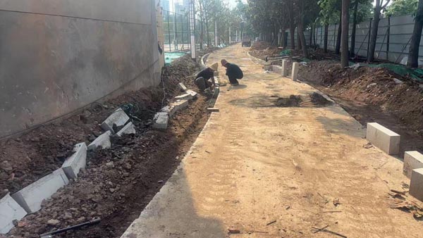新建围墙5000平方米,栽植苗木2500平方米,铺设草皮3000平方米,设置电动伸缩门1个。