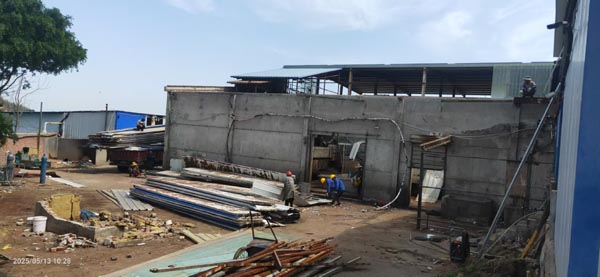 南区已完成所有施工任务;北区织布车间承台地梁全部浇筑完成,现浇结构完成50%;纺纱车间承台地梁浇筑完成90%,基础±0以下砌砖完成50%;厂前区宿舍楼、二号办公楼、一号办公楼及食堂主体结构封顶完成,宿舍楼二次结构完成,办公楼二次结构完成10%。