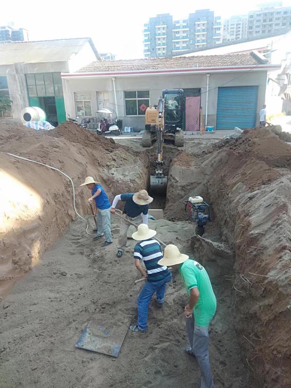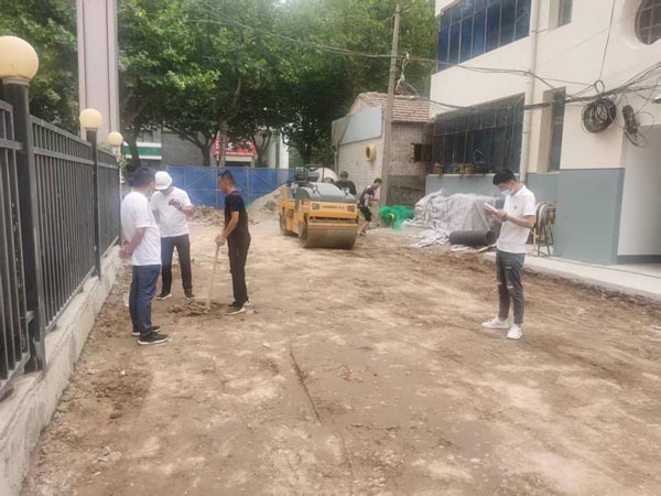 已完成道路硬化、室外雨水收集井。正在进行室外给水及消防管网安装。