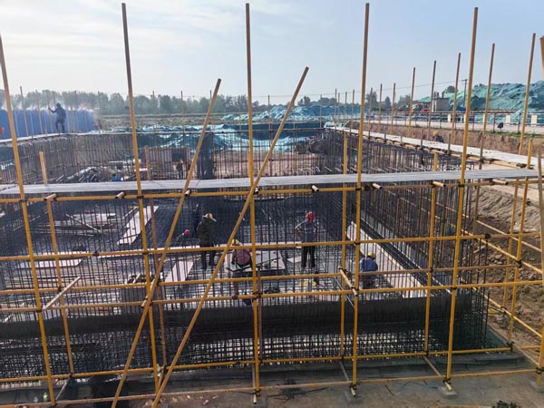 南区已完成所有施工任务;北区织布车间承台地梁全部浇筑完成,现浇结构完成50%;纺纱车间承台地梁浇筑完成90%,基础±0以下砌砖完成50%;厂前区宿舍楼、二号办公楼、一号办公楼及食堂主体结构封顶完成,宿舍楼二次结构完成,办公楼二次结构完成10%。