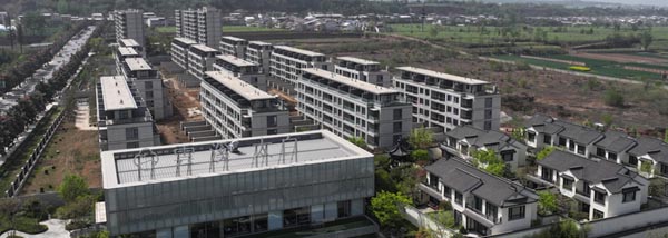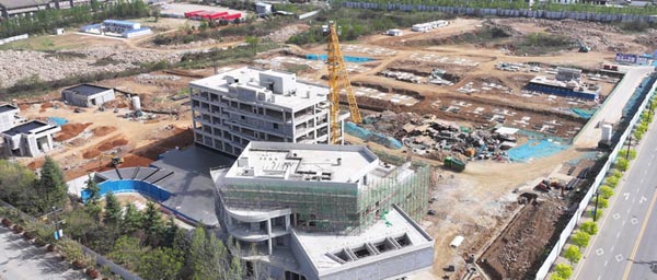 展示区已建成投运,住宅区8栋楼主体已建成,正在进行装修。
