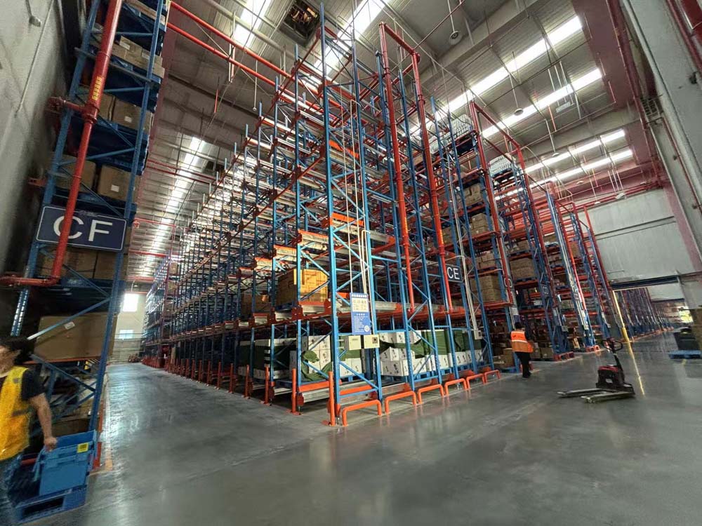 已全面建成3栋连体常温立体仓2万平方米,配备7层11米高位横梁货架、7560个拣货位和1.4万个托盘存储位,正在规划设计中央厨房。
