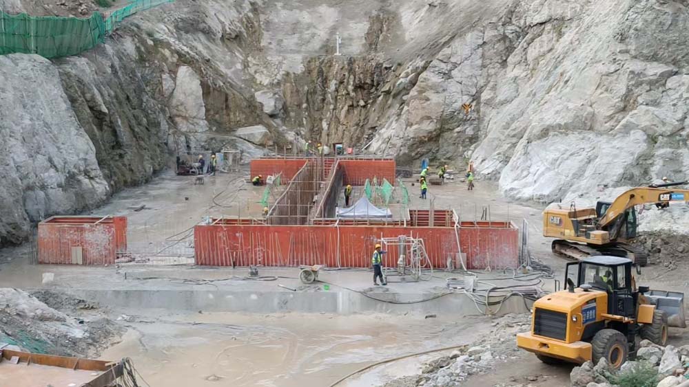 大坝基础堆石砼及垫层砼浇筑至923.5m高程,完成大坝护坦段堆石砼及钢筋砼浇筑,完成大坝基础固结灌浆,大坝右岸坝肩边坡喷射混凝土完成100%。